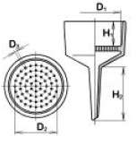 Büchner Sec funnels mod. 237/1: d1 mm 48, d2 mm 45, d3 mm 1, h1 mm 24, h2 mm 43