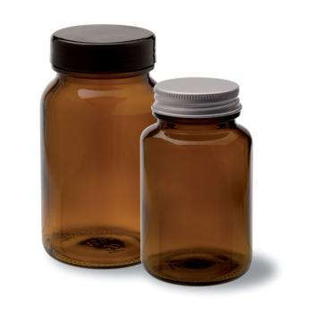 Contenitore bocca larga in vetro giallo 250 ml, Ø mm 65,0, H solo corpo 120,0, bocca 48/R3