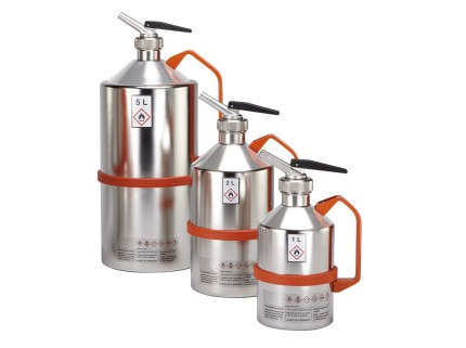 Lattina di sicurezza in acciaio inox cap. 2 lt , diam. 131 mm, altezza 295 mm, prodotto per lo stoccaggio di materiale infiammabile