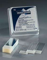 Vetrini Superfrost Plus “MENZEL” con carica positiva banda bianca dim. 25×75 mm