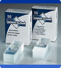 Vetrini portaoggetto “MENZEL” dim. mm 26×76, bordo molato 45° doppia banda smerigliata