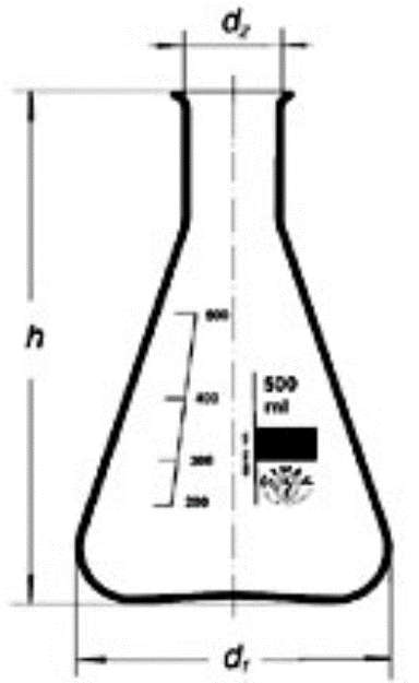Beuta Erlenmeyer collo largo Duran: cap. ml 500, diam. mm 105, h mm 175