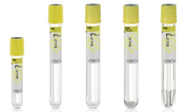 Vacumed 13×75 mm without preservative x 4 ml of urine, yellow cap, sterile pack. 1200 pcs.