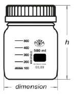 Autoclavable bottle borosilicate glass white blue cap screw: cap. ml 500, diam. mm 86, h mm 182