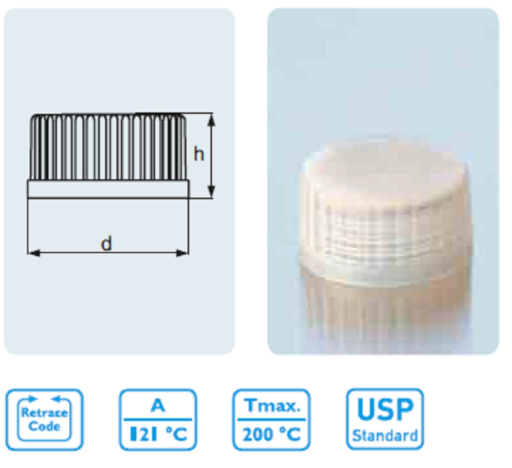 PP Screw caps with lip seal GL 25: color blue, diam. mm 33, h mm 19