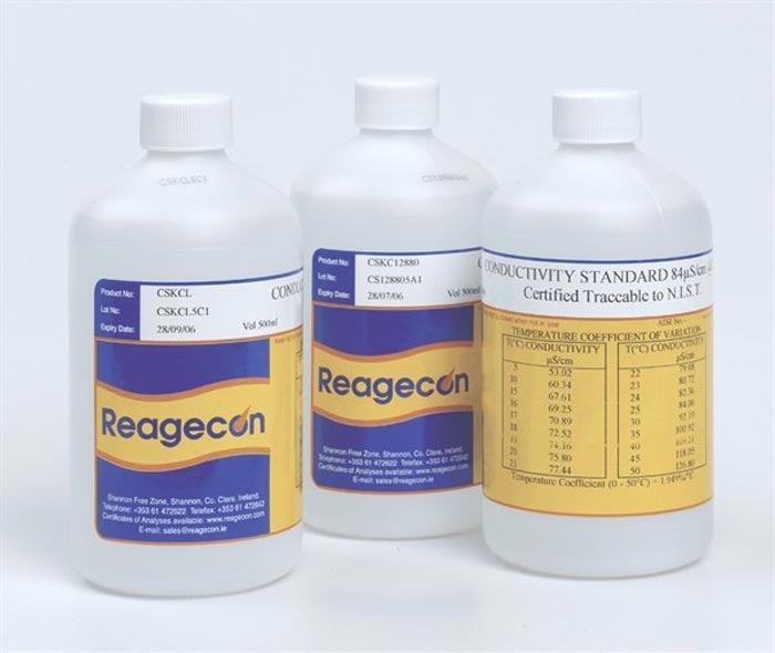 Standard conductivity solutions for calibration of laboratory and plant conductometers.Remember that the 5 and 10μS standards have a maturity of 3 months, all the other 6-18 months.