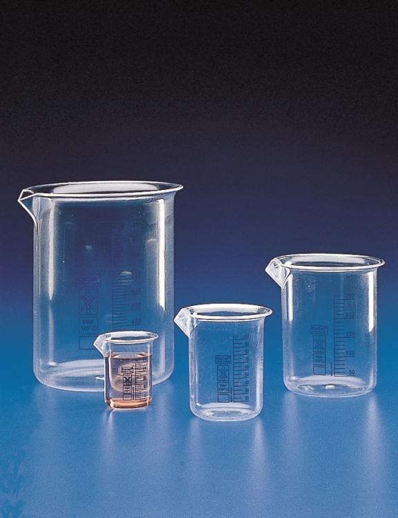 Blue graduated beaker low form PMP – CLASS B : cap. ml 100, subdivis. ml 5, O.D. Ø mm 52, h mm 72