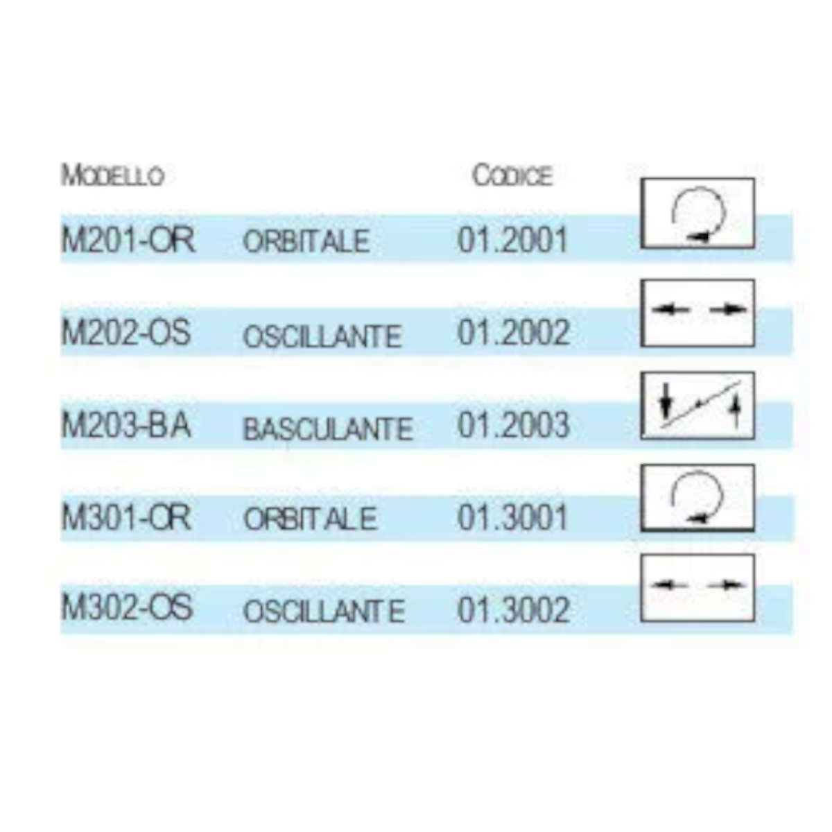 Modelli M201-OR / M202-OS / M203-BA