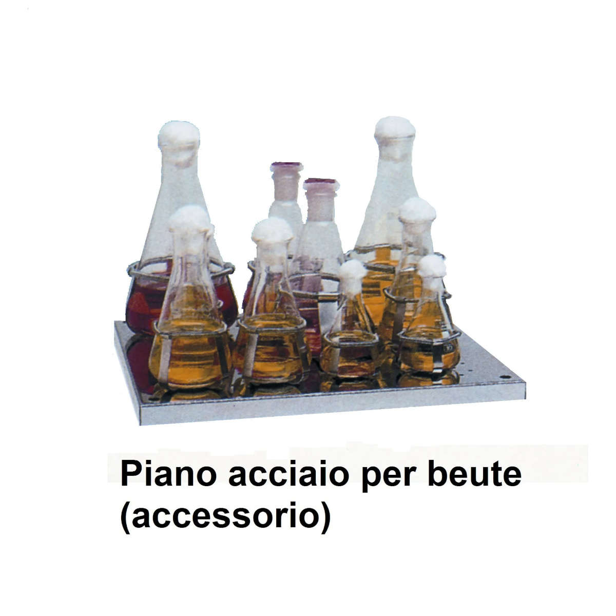 Piano di lavoro ricoperto in gomma adatto per alloggiare n. 4 cursori regolabili per beute, bottiglie, matracci, ecc.