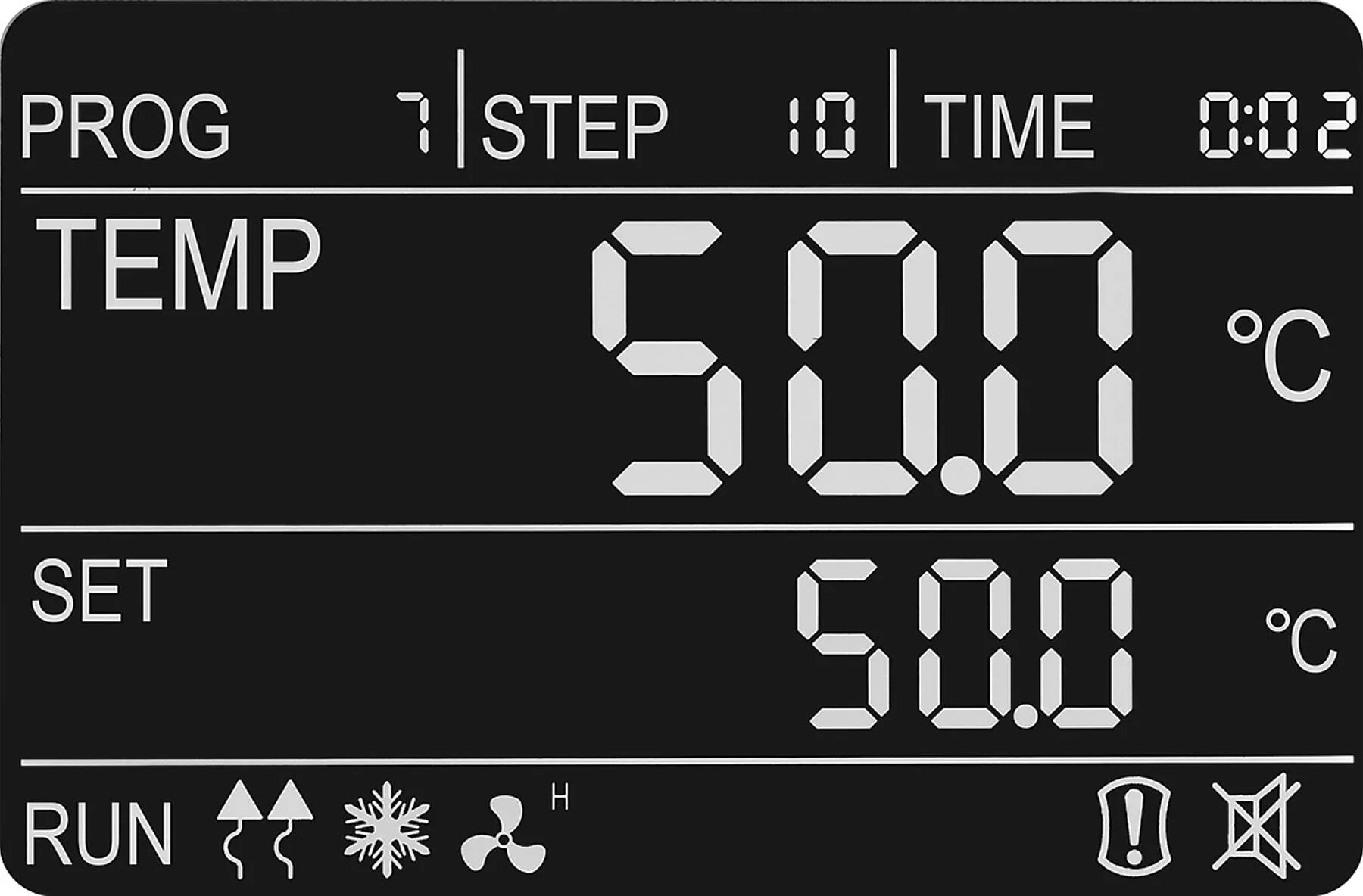10 programmi memorizzabili di cui: 1 programma a singolo step di temperatura, 8 programmi memorizzabili con 8 step ciascuno ed 1 programma multi-step