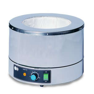 Riscaldatore per palloni di grosse capacità serie MA 3000 ml: dim. est. mm 310×290, peso kg 6.0, potenza res. riscald. W 600, temp. max. +350, alimentazione V/HZ 230/50-60, precisione piastra ± 5, classe di protezione IP 44, classe di sicurezza 0